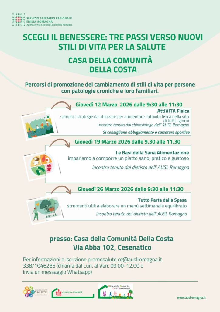 Per informazioni e iscrizione: promosalute.ce@auslromagna.it; cell. 338/1046285 dal lun. al ven. 9-12 o invia un messaggio whatsapp.