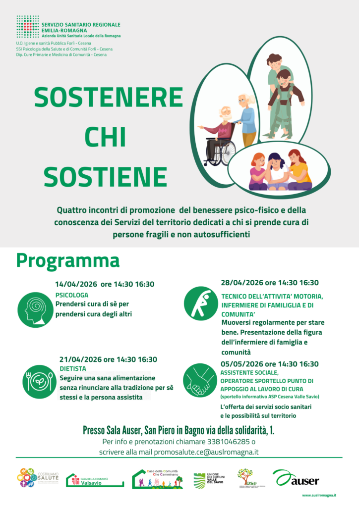 l’U.O. Igiene e Sanità Pubblica di Forlì-Cesena organizza il corso “Sostenere chi sostiene”, che si terrà a San Piero in Bagno nelle seguenti date: