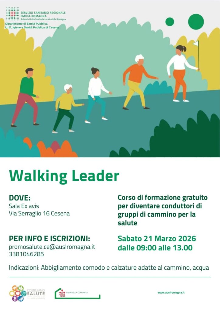Il corso per diventare Walking Leader, si terrà il 21/03/2026 dalle 09.00 alle 13.00 presso via Serraglio, 16 Cesena.